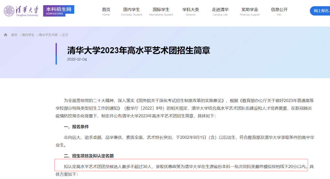 根据教育部文件精神要求,各大高校纷纷制定并公布的2023年高水平艺术团招生简章中,也体现了高校对学生德智体美劳全面发展的注重。